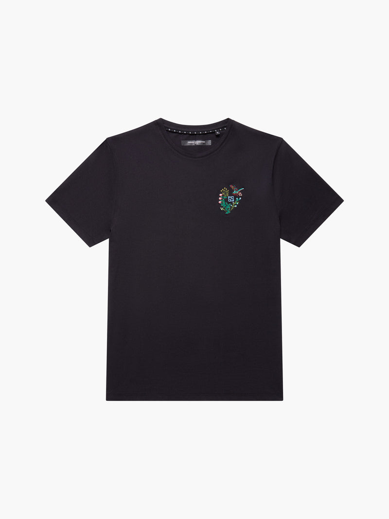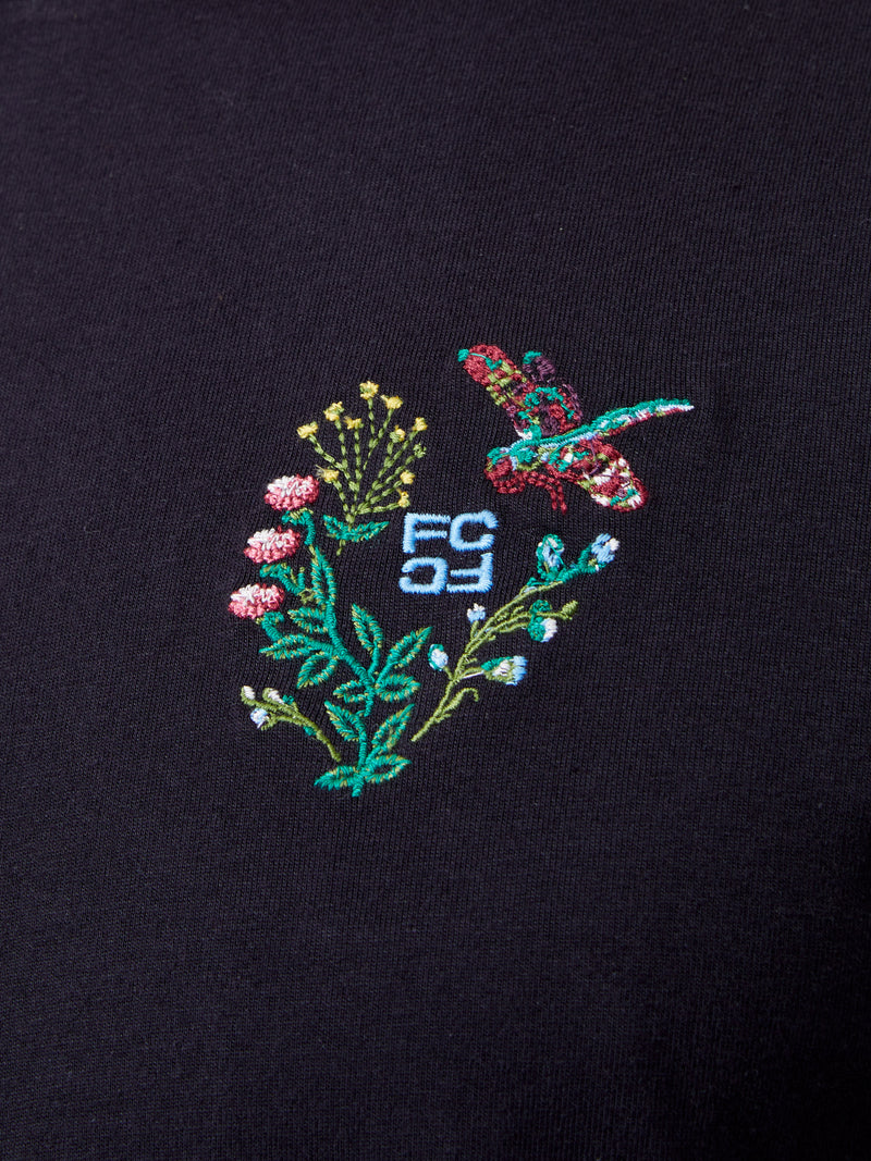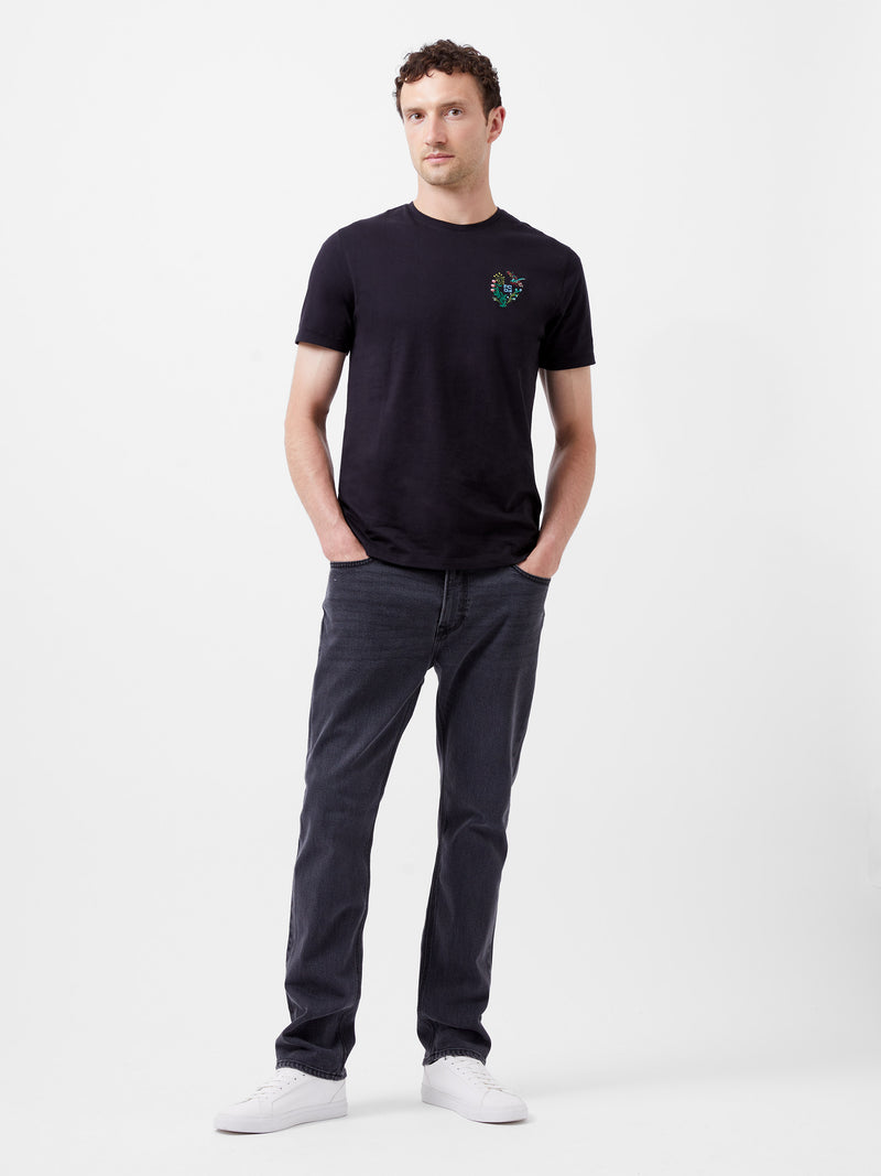 Intricate embroidery sets this graphic tee apart from the rest. Our Embroidered Dragonfly Organic Graphic T-Shirt breathes life into the casual short sleeve silhouette with a multi-coloured graphic depicting a dragonfly, flowers and French Connection logo in detailed embroidery.