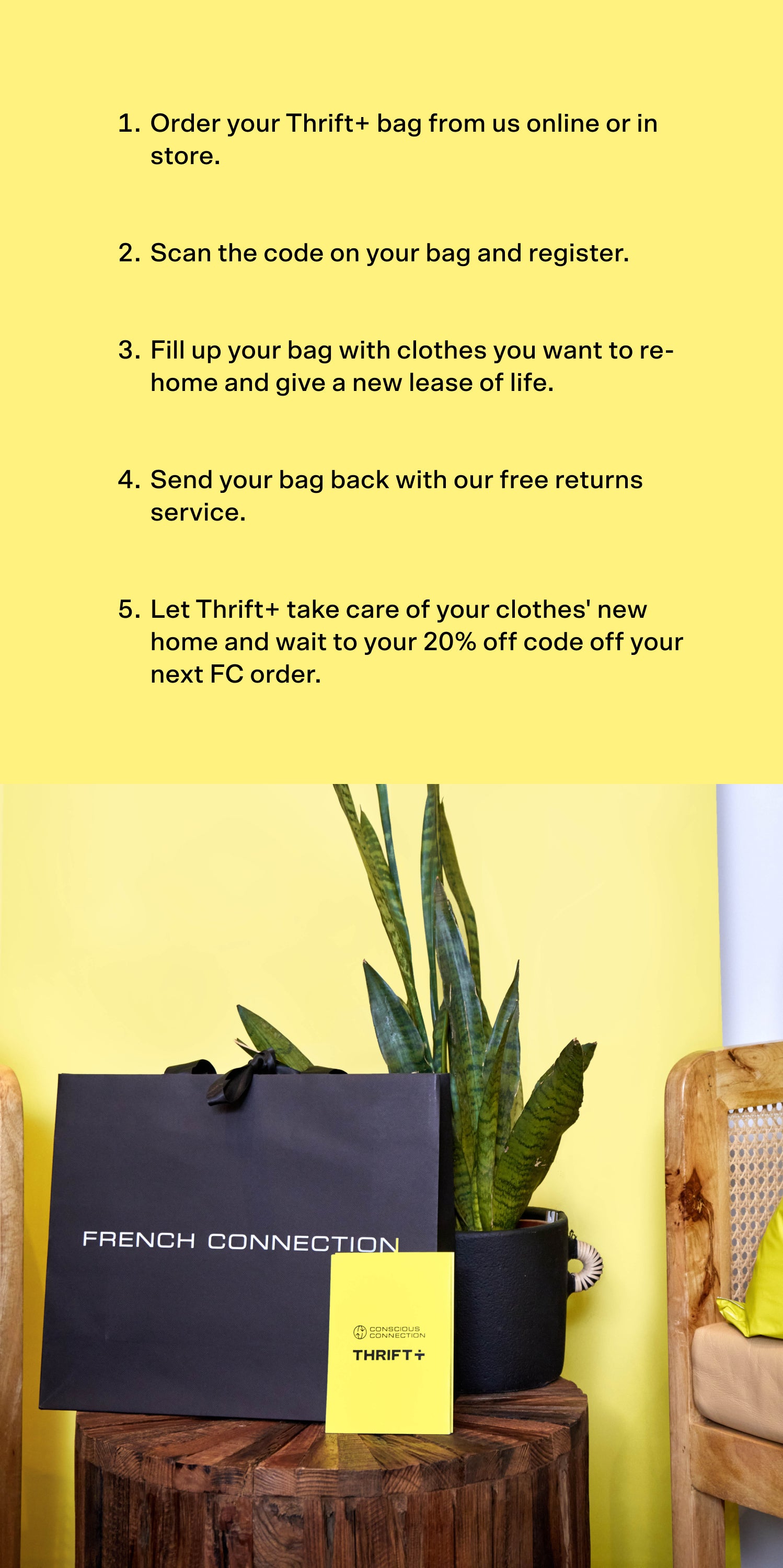 At the moment, the French Connection x Thrift+ takeback scheme is a UK only partnership. However, we are currently looking into international options to expand this circular fashion initiative globally.