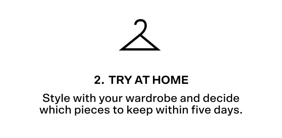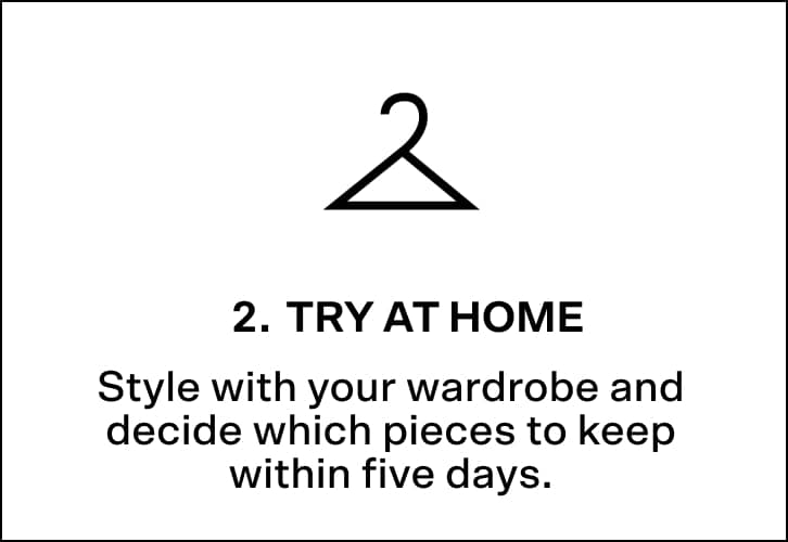 For the Try Before You Buy service, you have five calendar days to try your items on and send any unwanted items back. Please do not remove any labels or wear the pieces beyond trying them on. Any worn or damaged items will be charged for.