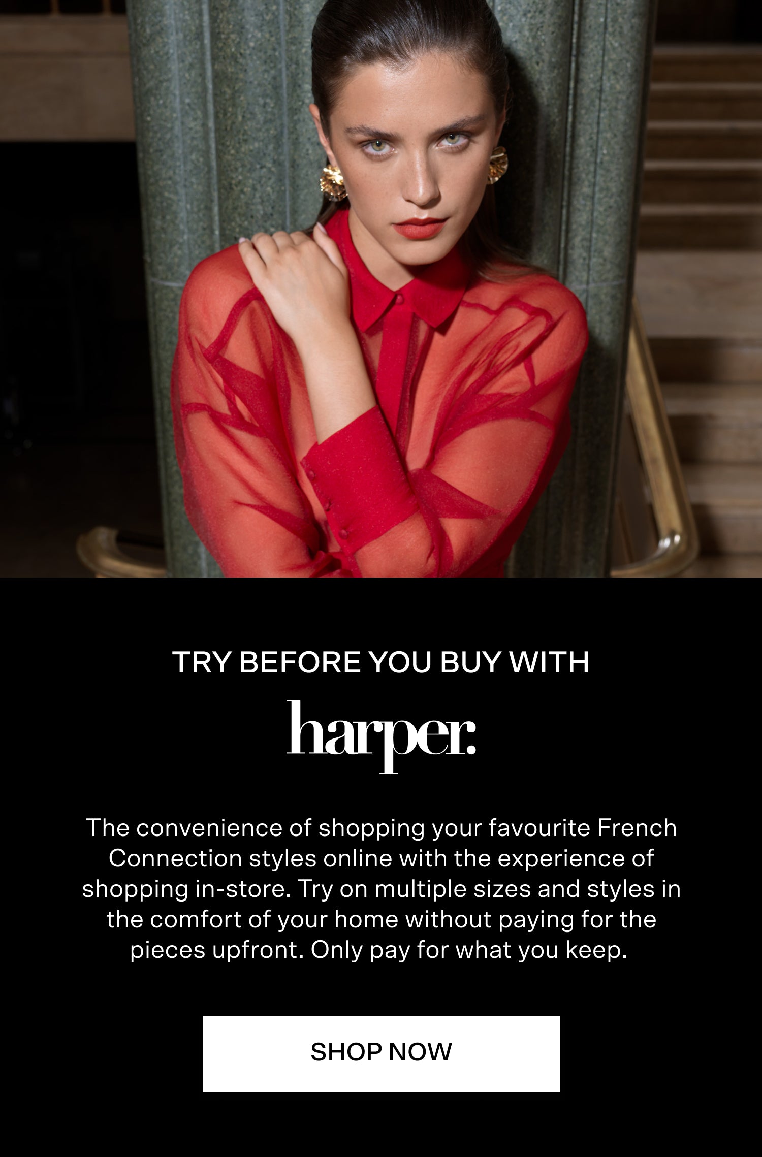 Harper offers a convenient and stress-free shopping experience that allows you to see and feel your pieces before committing to a purchase, just like in a store. Our Try Before You Buy service enables you to try on pieces with your own wardrobe at home and only pay for the ones you decide to keep at the end of your trial period. Experience a personalized shopping experience that fits seamlessly into your life, all through our online store. With Harper, online shopping has become more interactive and enjoyable.