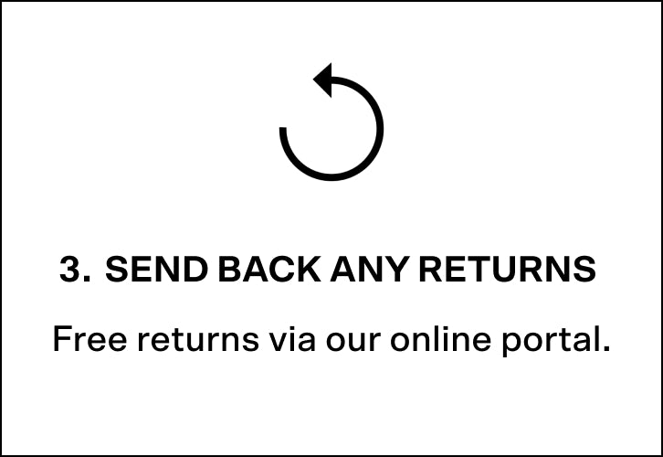 For the Try Before You Buy service, you can easily return items via our Returns Portal. Please ensure that any returned pieces have the label, are unworn and undamaged or they will not be accepted and you will be charged.