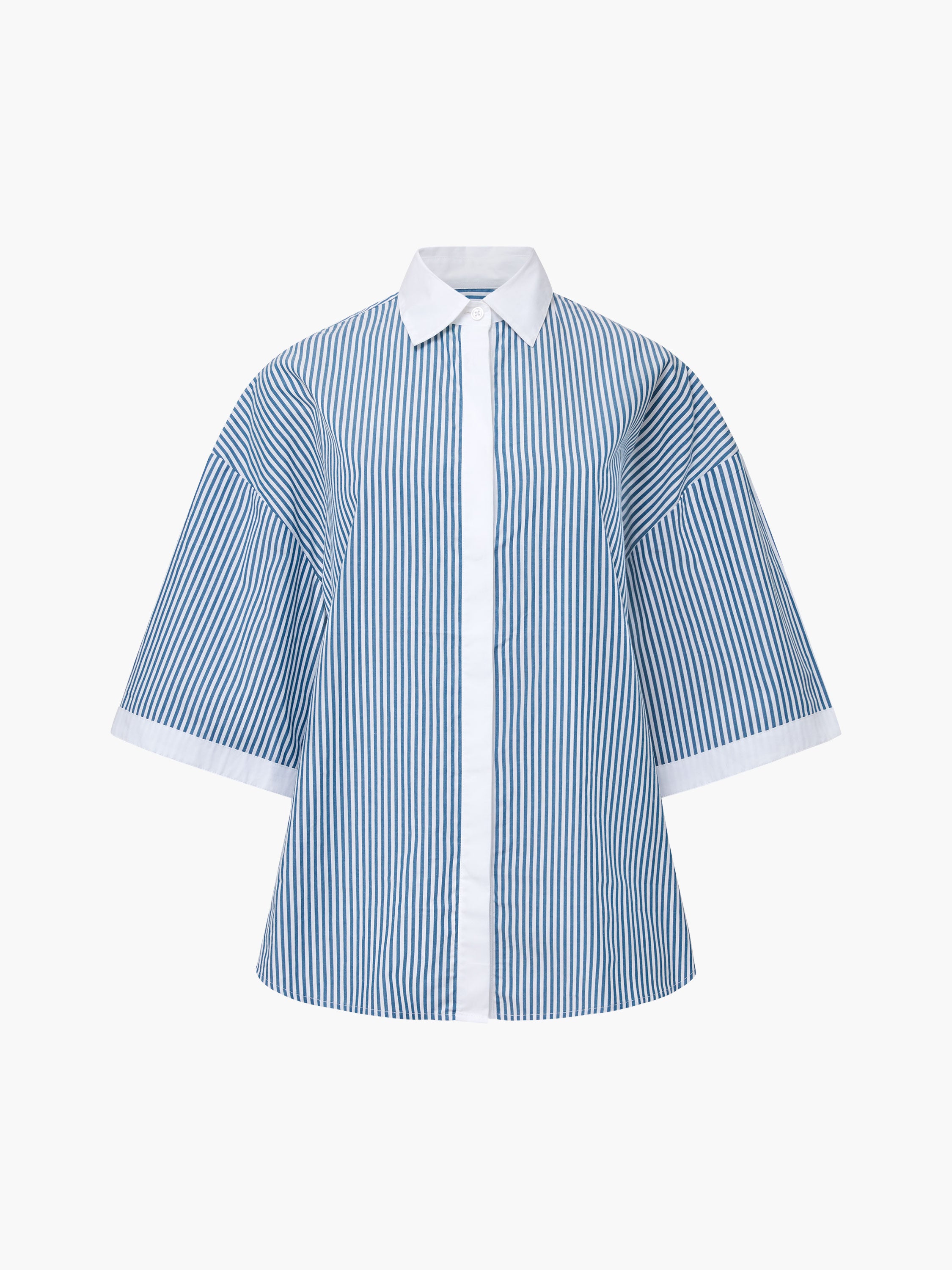 Say hello to stripes with personality. Our Cambria Stripe Short Sleeve Shirt features an oversized silhouette with sharp contrast - think crisp white trims, bold blue stripes and an easywear button down front.