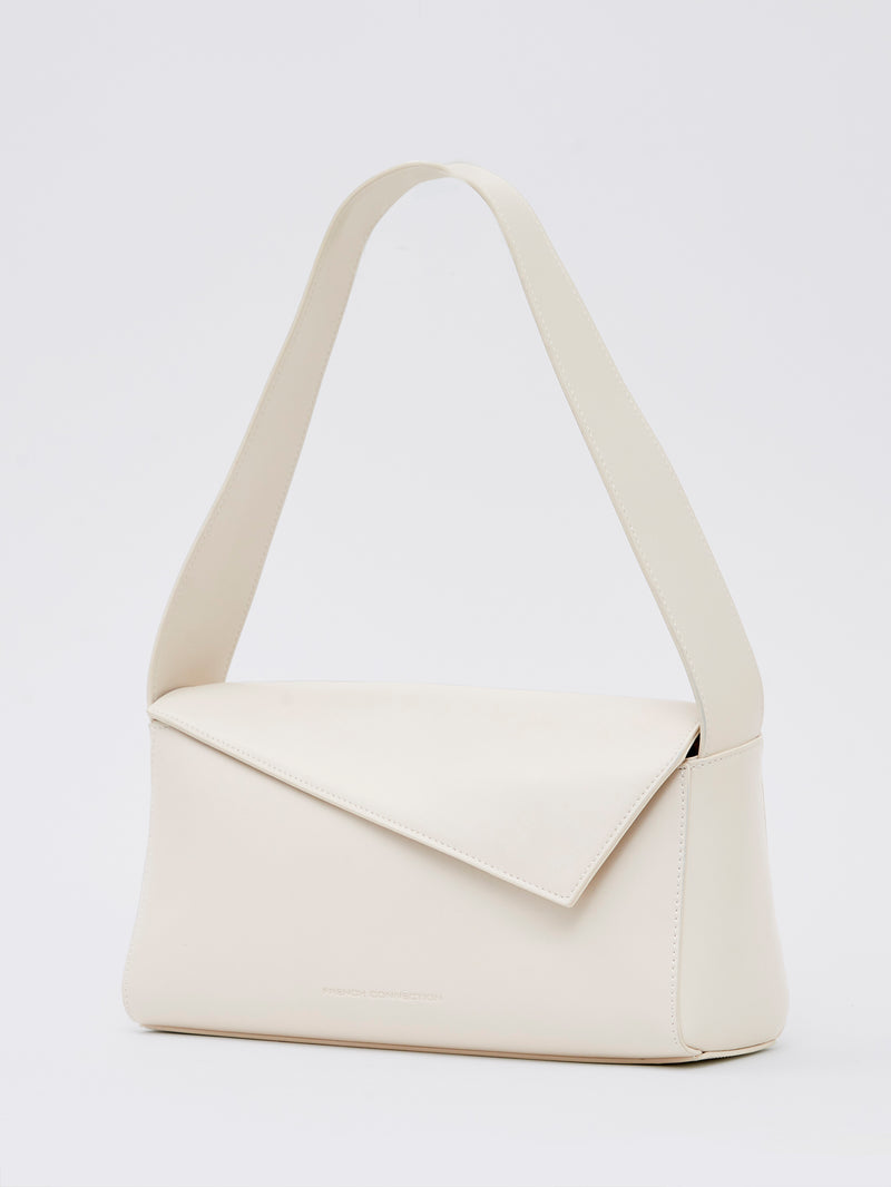 A chic finishing touch? Our Jeenaa X Envelope Bag is the perfect piece. This smooth faux leather handbag pairs a classic cream colourway with a contemporary design, with secure zip and magnet fastenings concealed by an asymmetric envelope flap, whilst the bag's body is complete with authentic French Connection branding.