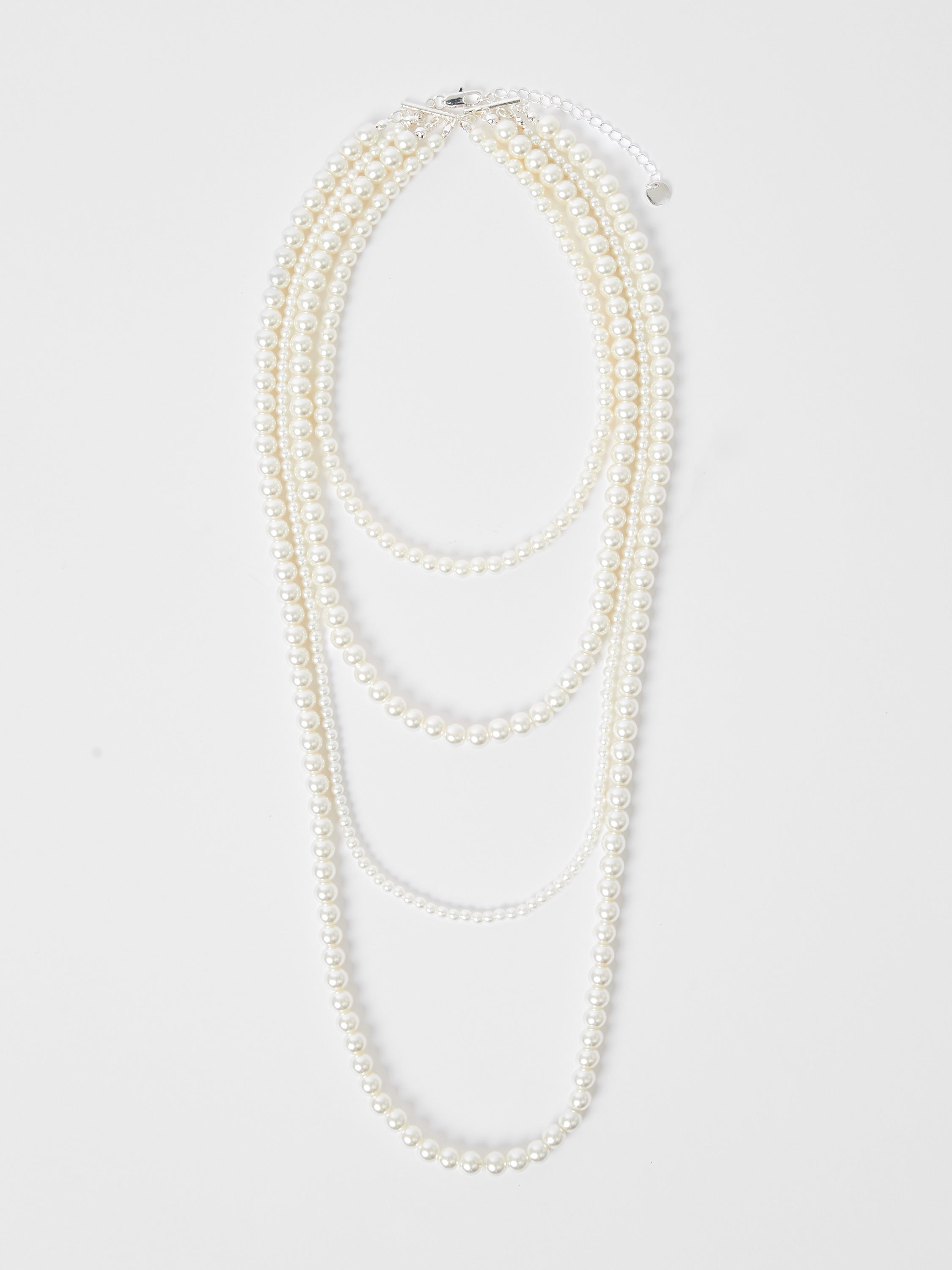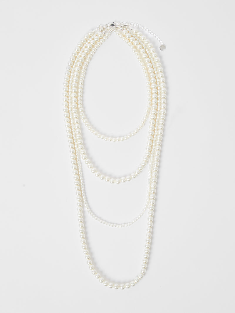Elevate your outfits at ease with our Layered Faux Pearl Necklace. This necklace offers classic glamour at ease, with a 4 strand design for an on-trend layered look, each presenting different sized faux pearls. This timeless piece will catch attention and cue compliments with every wear.