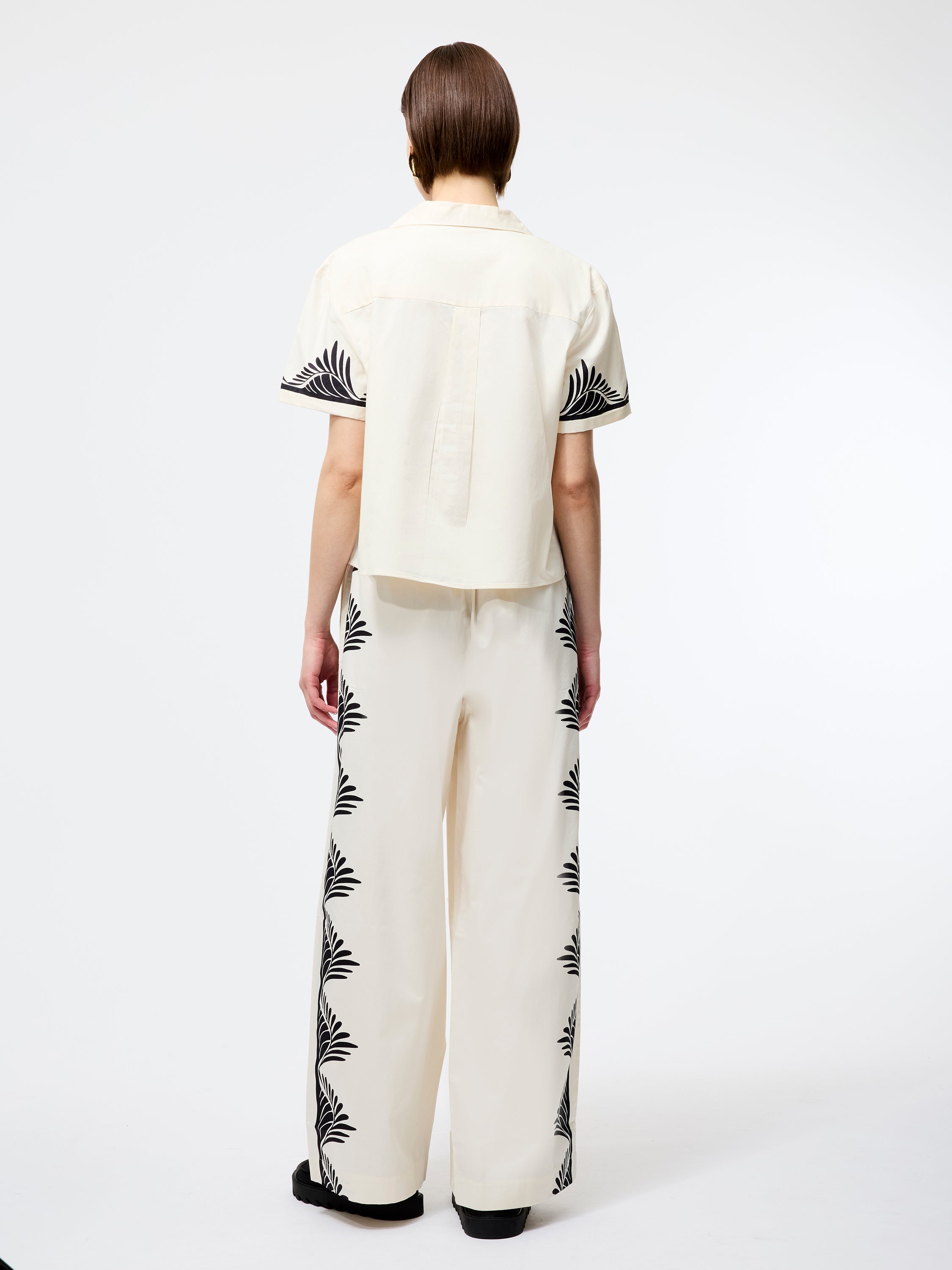 Bold botanical prints meet breezy tailoring. Our lightweight Nola Alexis Printed Shirt partners a split lapel collar, short sleeves and button down front with a symmetrical print.