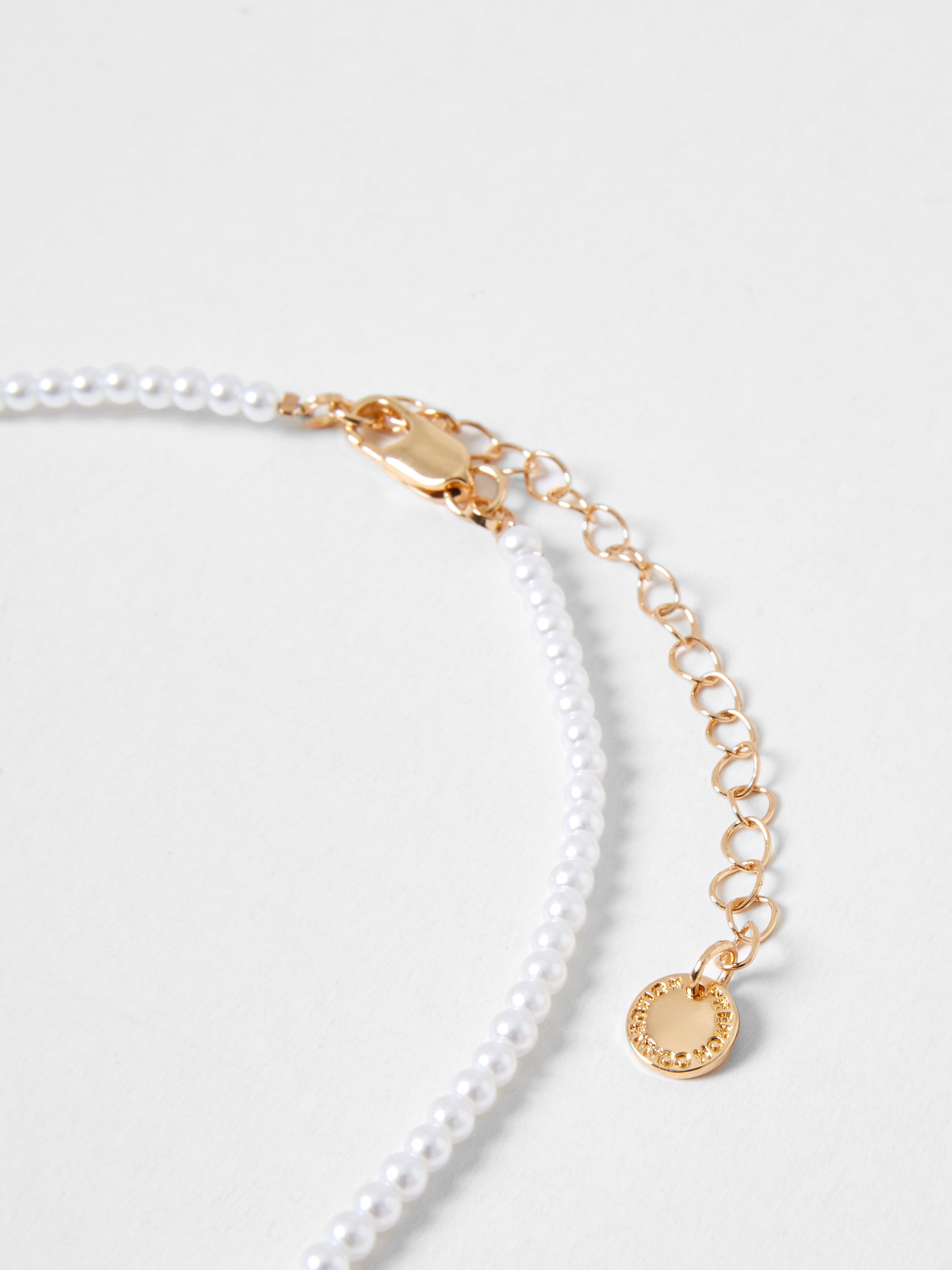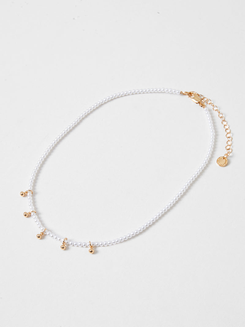 Elegant jewellery with a luxe update. Our Pearl Necklace features gleaming freshwater pearls, complimented by gold tone drop charms and secured by a co-ordinated lobster clasp fastening. Elevate your jewellery collection with this divine addition.