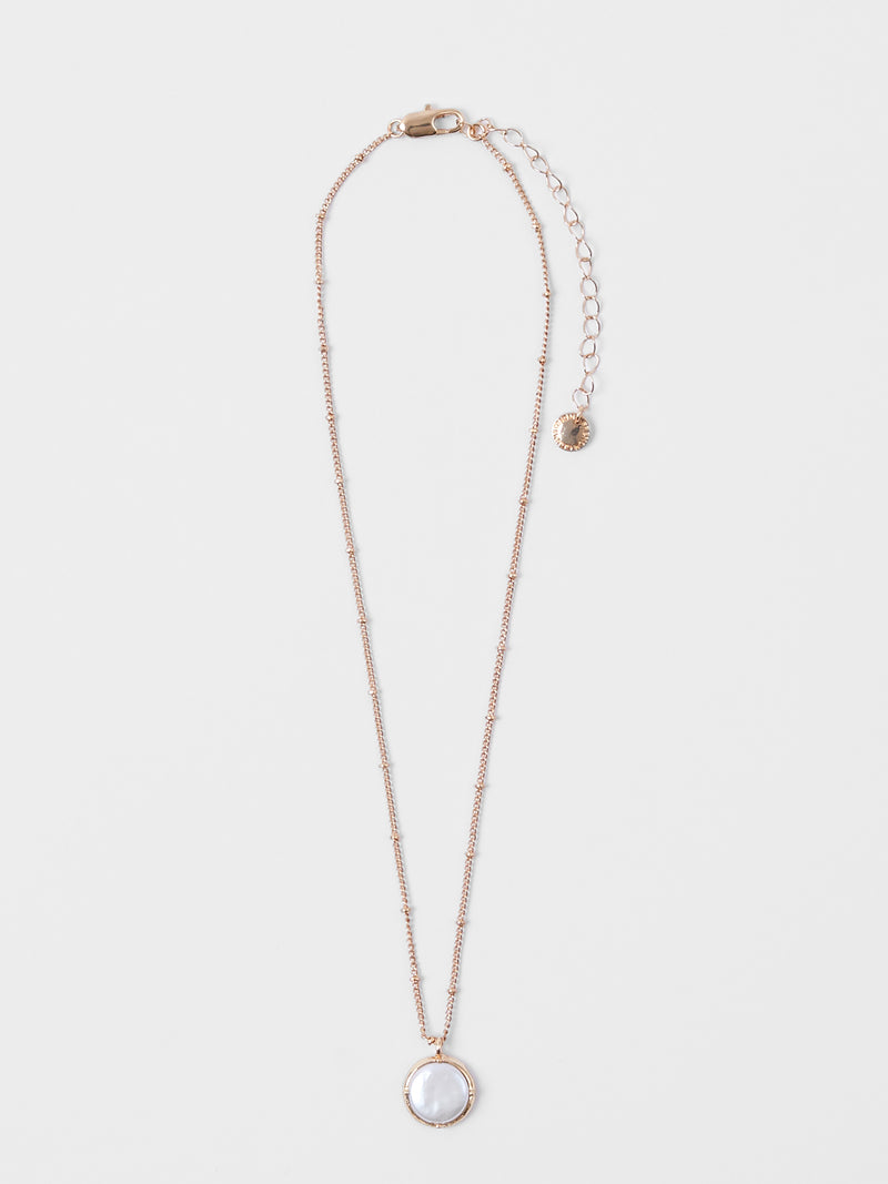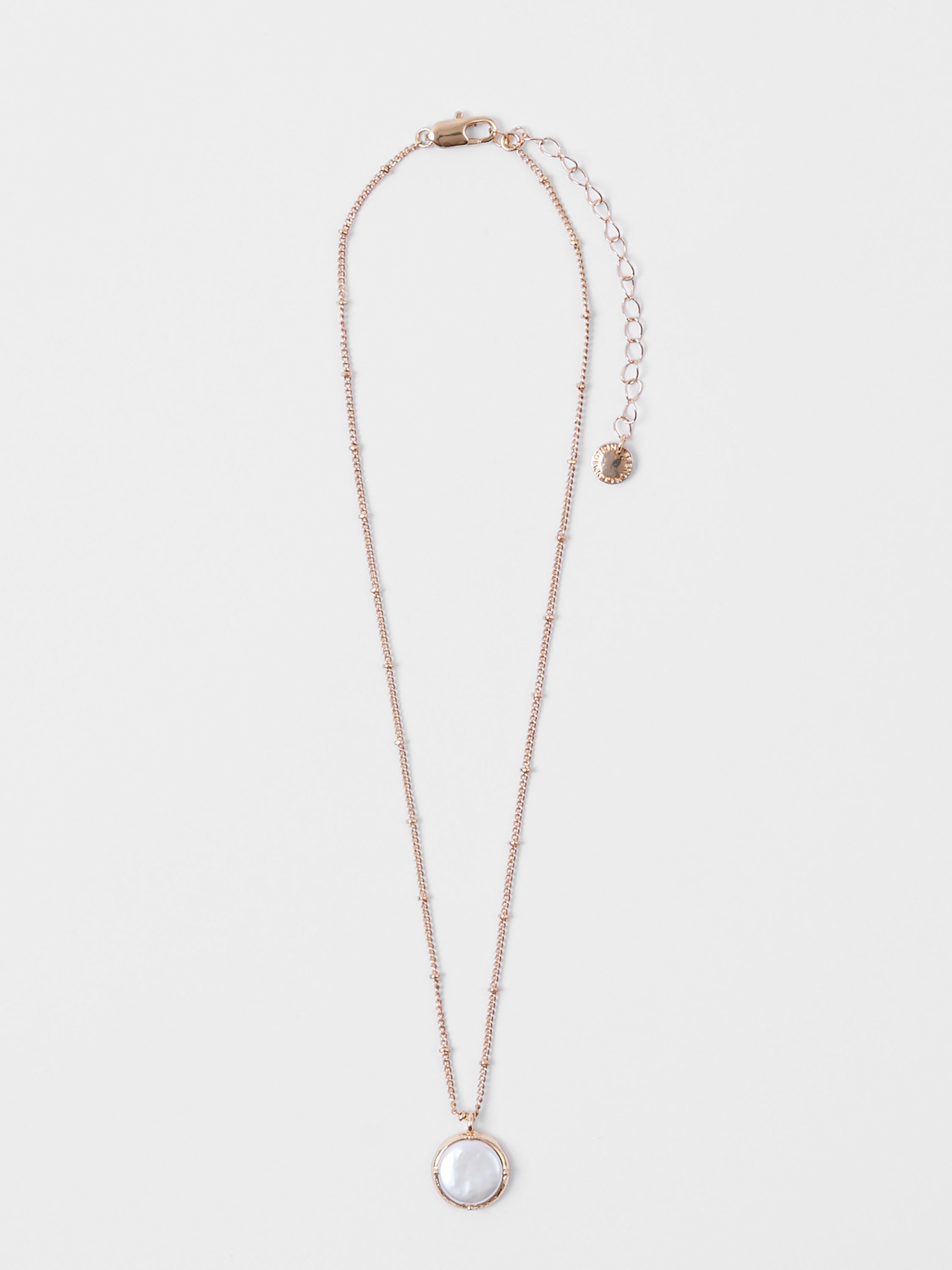 Our Pearl Pendant Necklace mixes classic with contemporary. A faux pearl pendant gleams upon the end of a satellite chain, adding modern elegance to your jewellery collection.