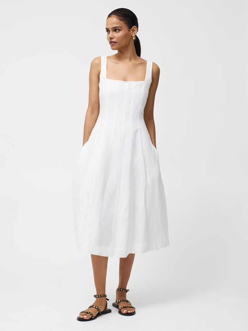 Our Birdie Linen Square Neck Dress was made for golden-hour moments. This linen midi dress features a sharp square neckline, delicate princess seamed bodice and an A-line skirt complete with invisible side pockets.