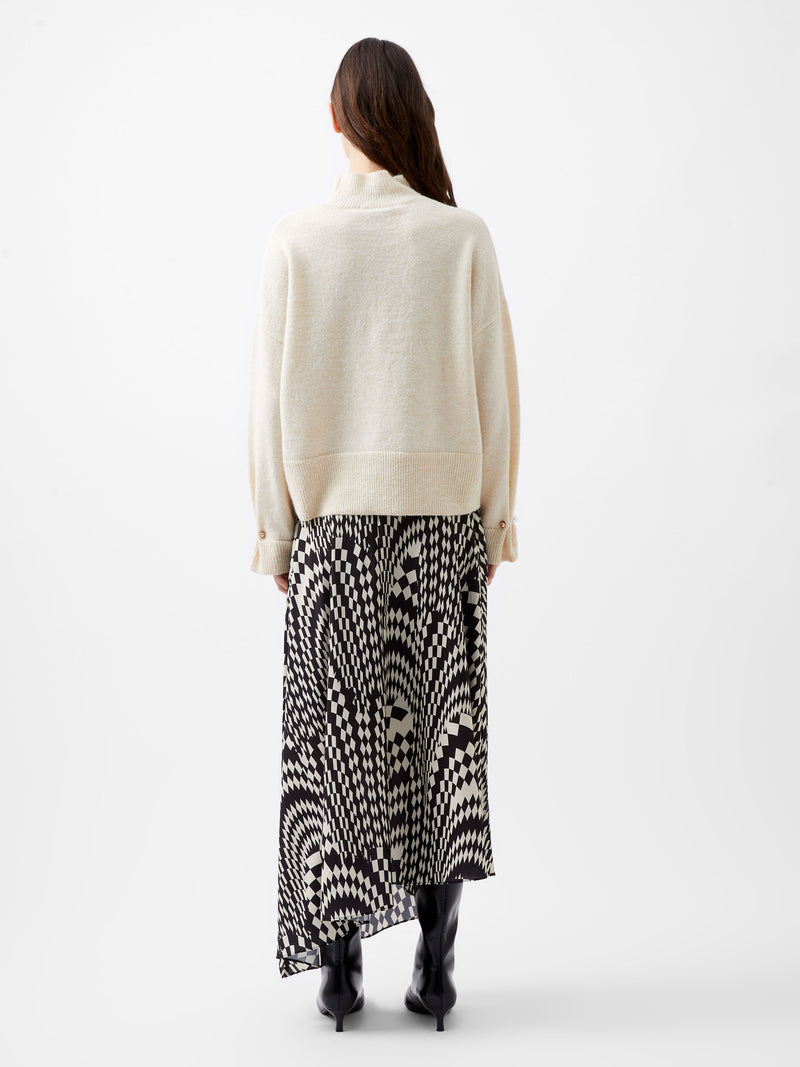 Elevate your soft knits for the season with our Kezia Pearl Cuff Detail Jumper. This sweet jumper poses in relaxed elegance with a mock neck and pair of long sleeves graced with gleaming pearl details upon the cuffs.