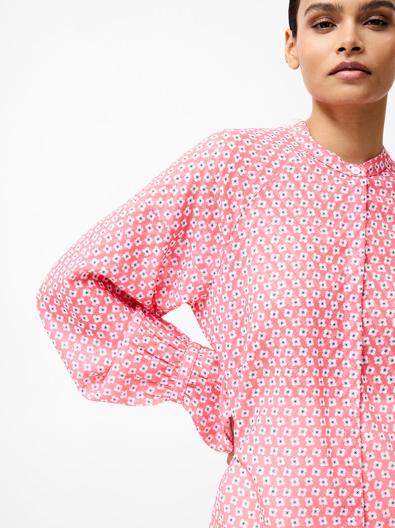 • Fabric: lightweight, subtle texture, floral geometric print, pink