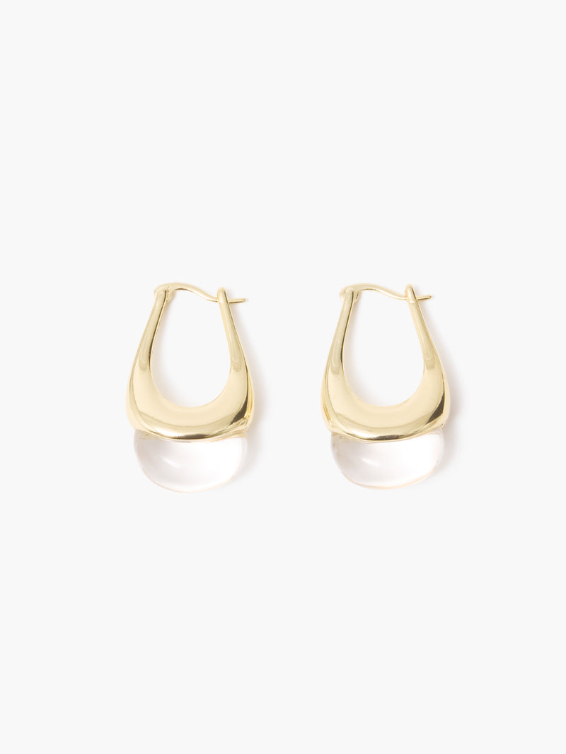 Dipped in shine, finished with a hint of clarity. Our Crystal Droplet Hoop Earrings balance smooth metallic curves with a clear drop for a bold yet fluid appearance.