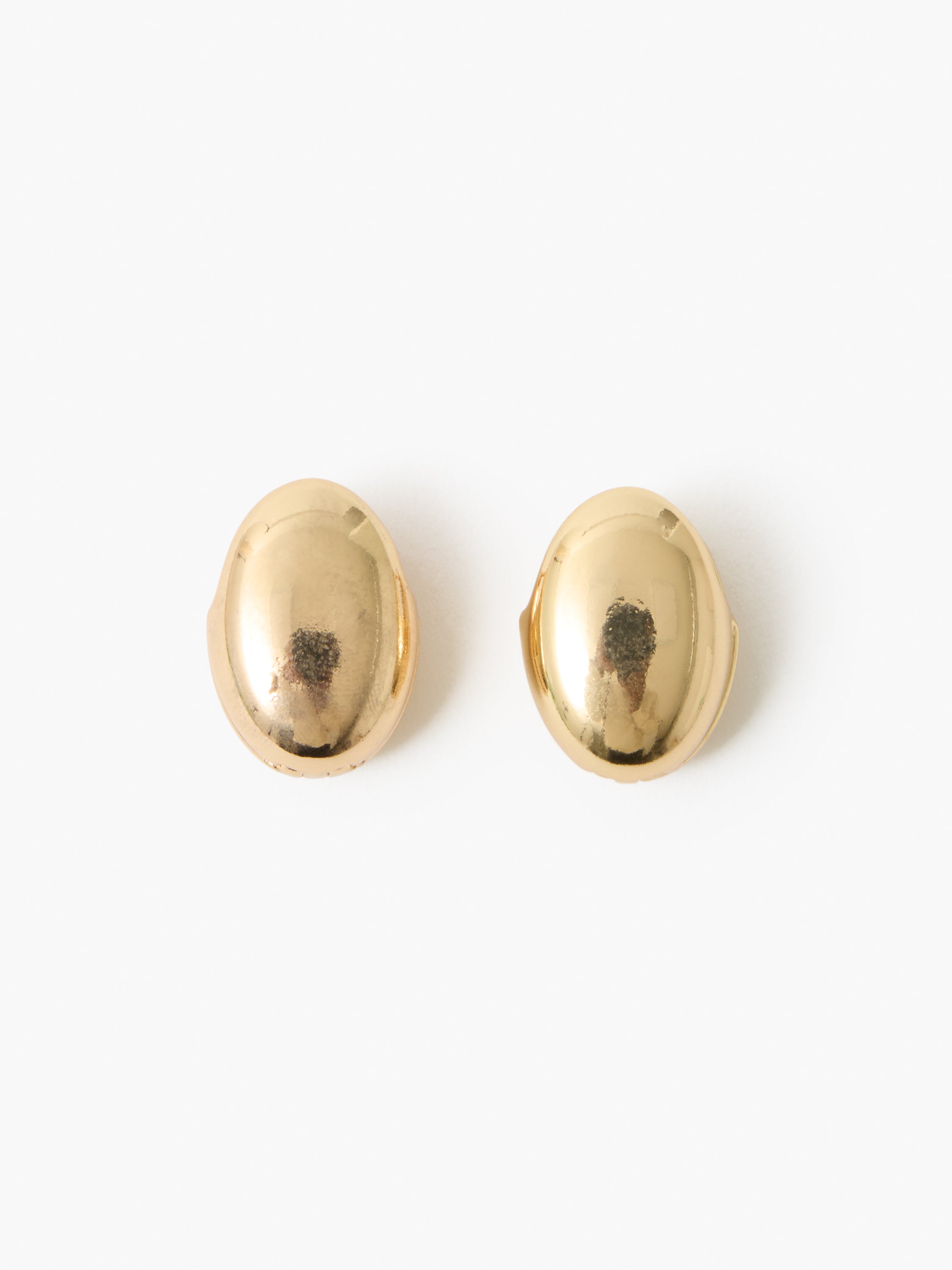 Our Double Sided Curved Dome Hoop Earrings are twice as nice. These domed, double-sided earrings serve up sleek curves and a high-shine gold-tone finish, secured with a hinge.