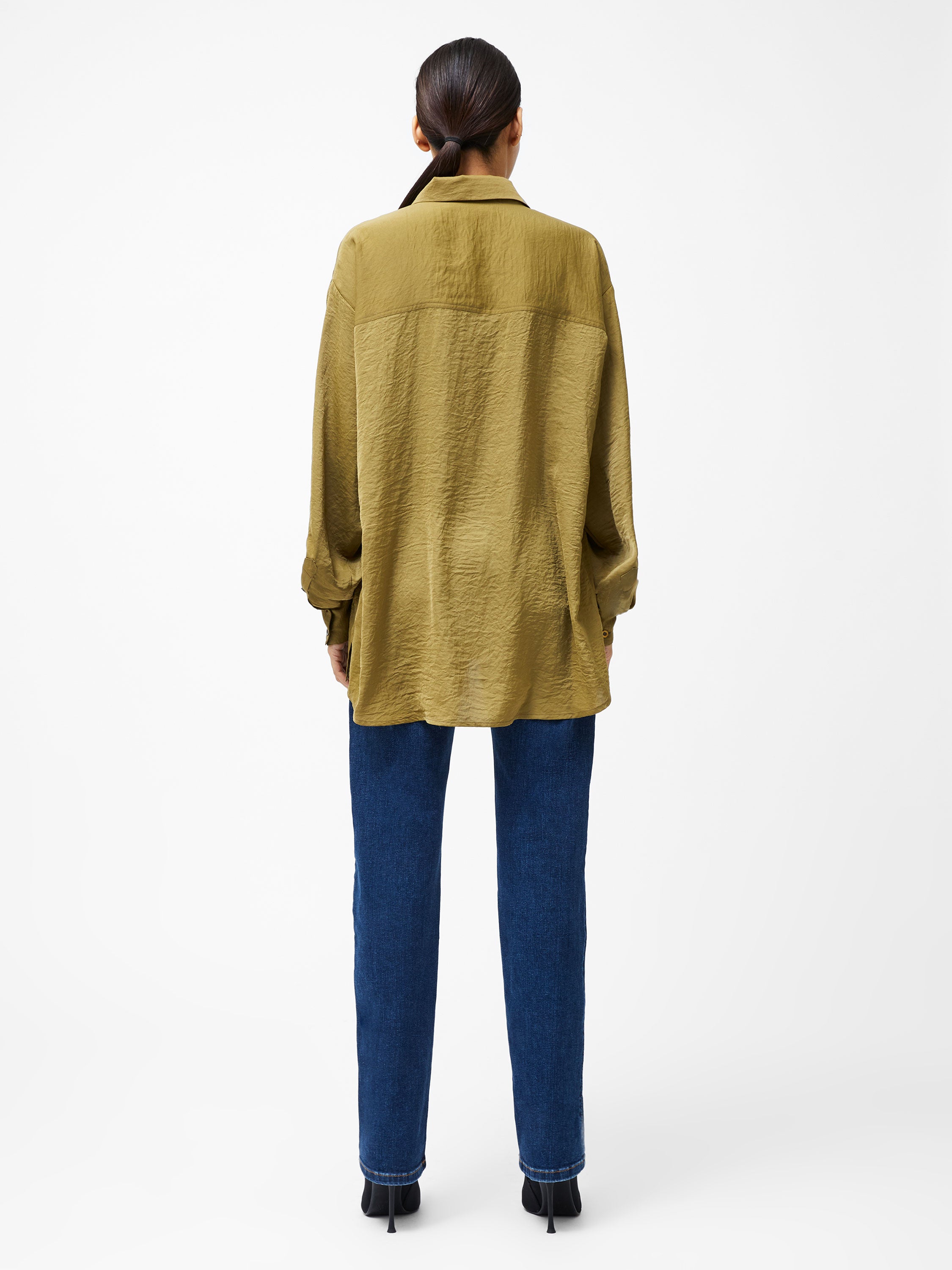 Our Blaine Satin Shirt is a sleek modern take on shirting. This satin shirt has a pointed collar, front buttons and two flap breast pockets tapping into the current utility trend.