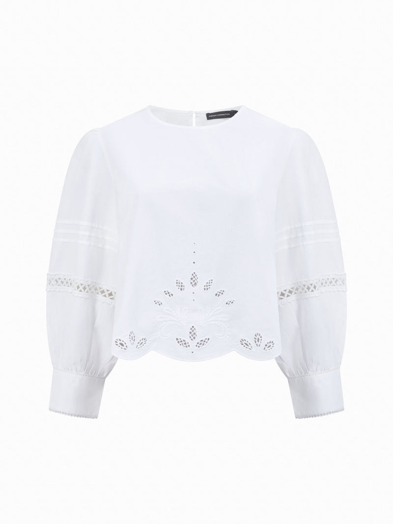 A crisp cotton top is a blue sky essential, and our Broderie Border Top is a perfect example. Intricate broderie detailing compliments this top's scallop hem and puff sleeves, while its fastened by a keyhole buttoned back.