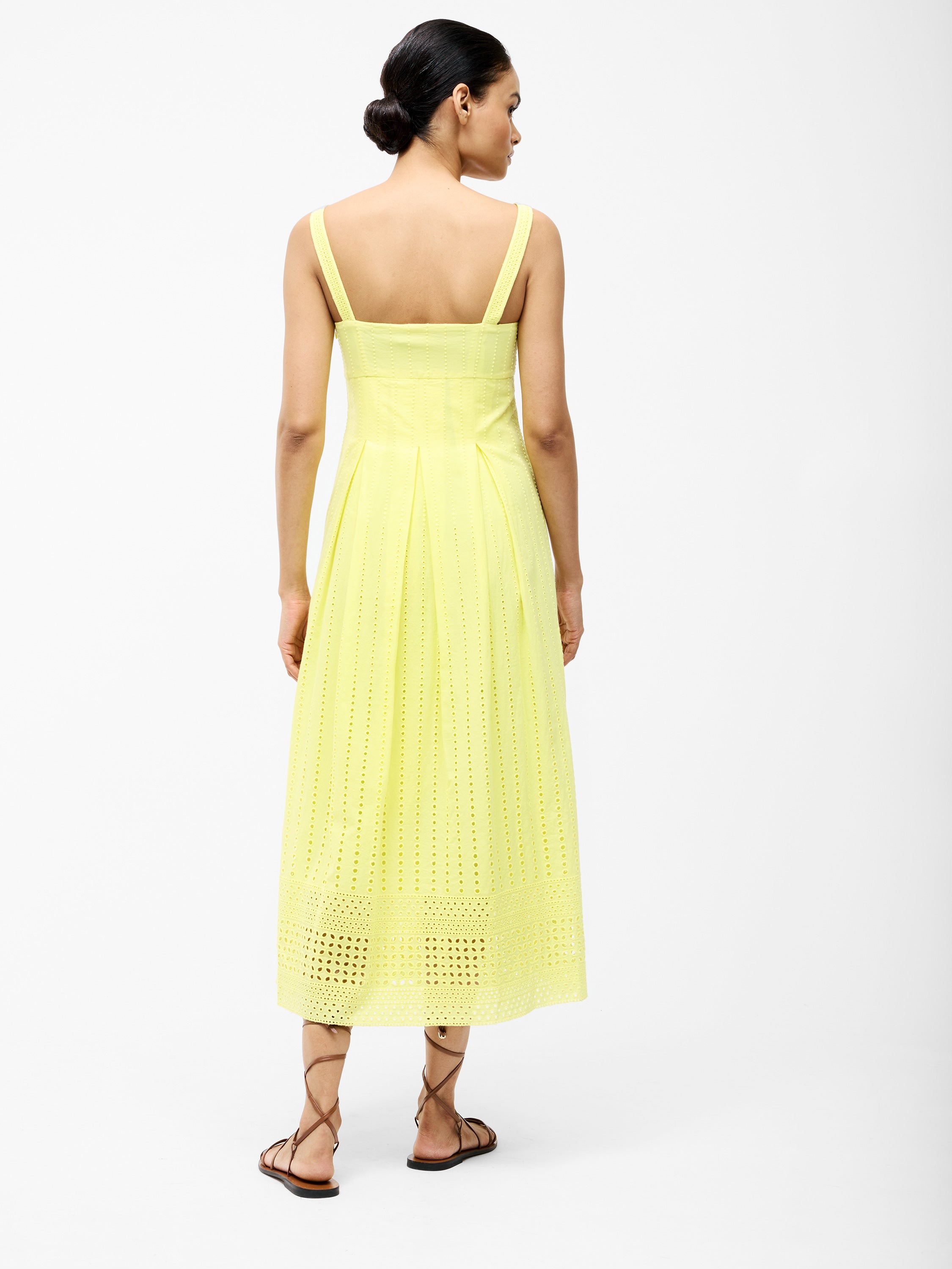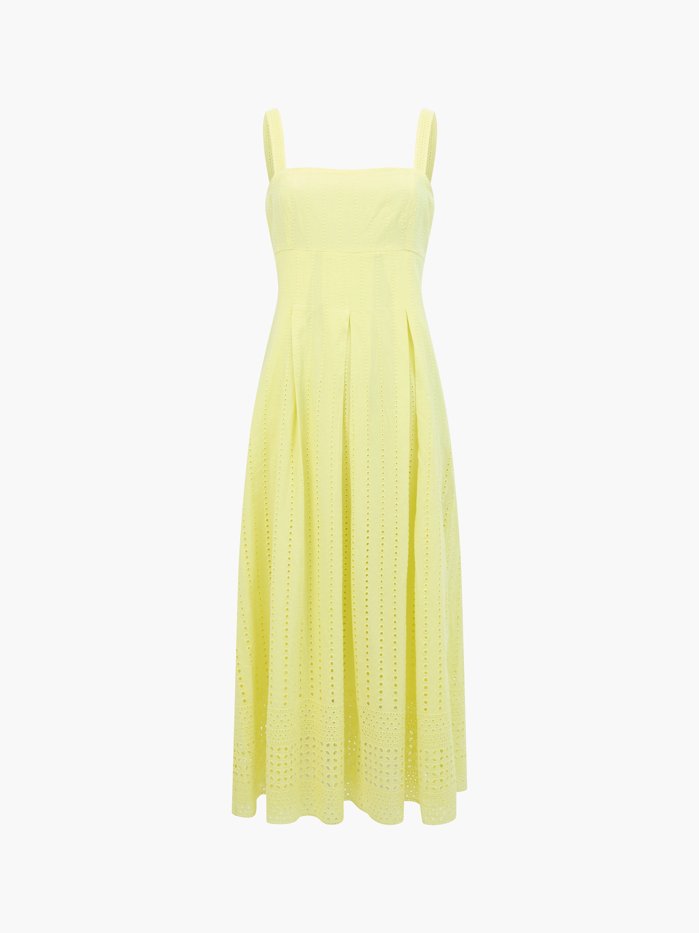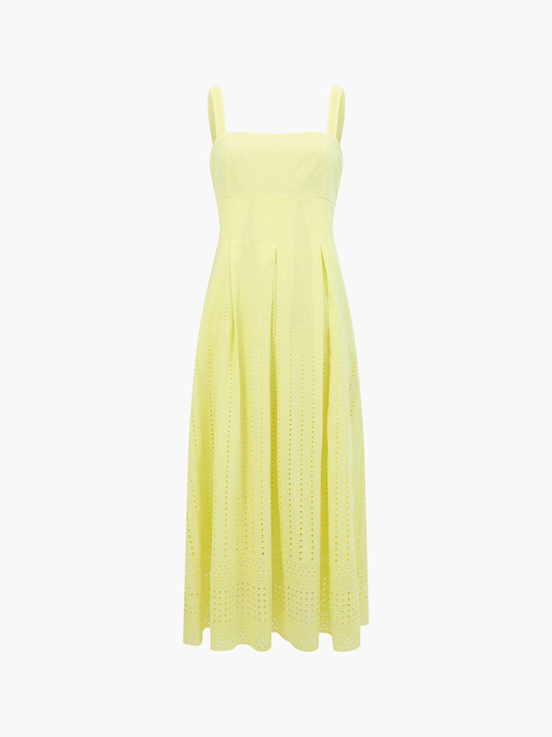 Our Broderie Strap Dress is a sweet summer classic. Delicate and divine broderie anglaise bring this summer dress to life, starting from its straps and square neckline flowing down its body complete with flattering box pleats.