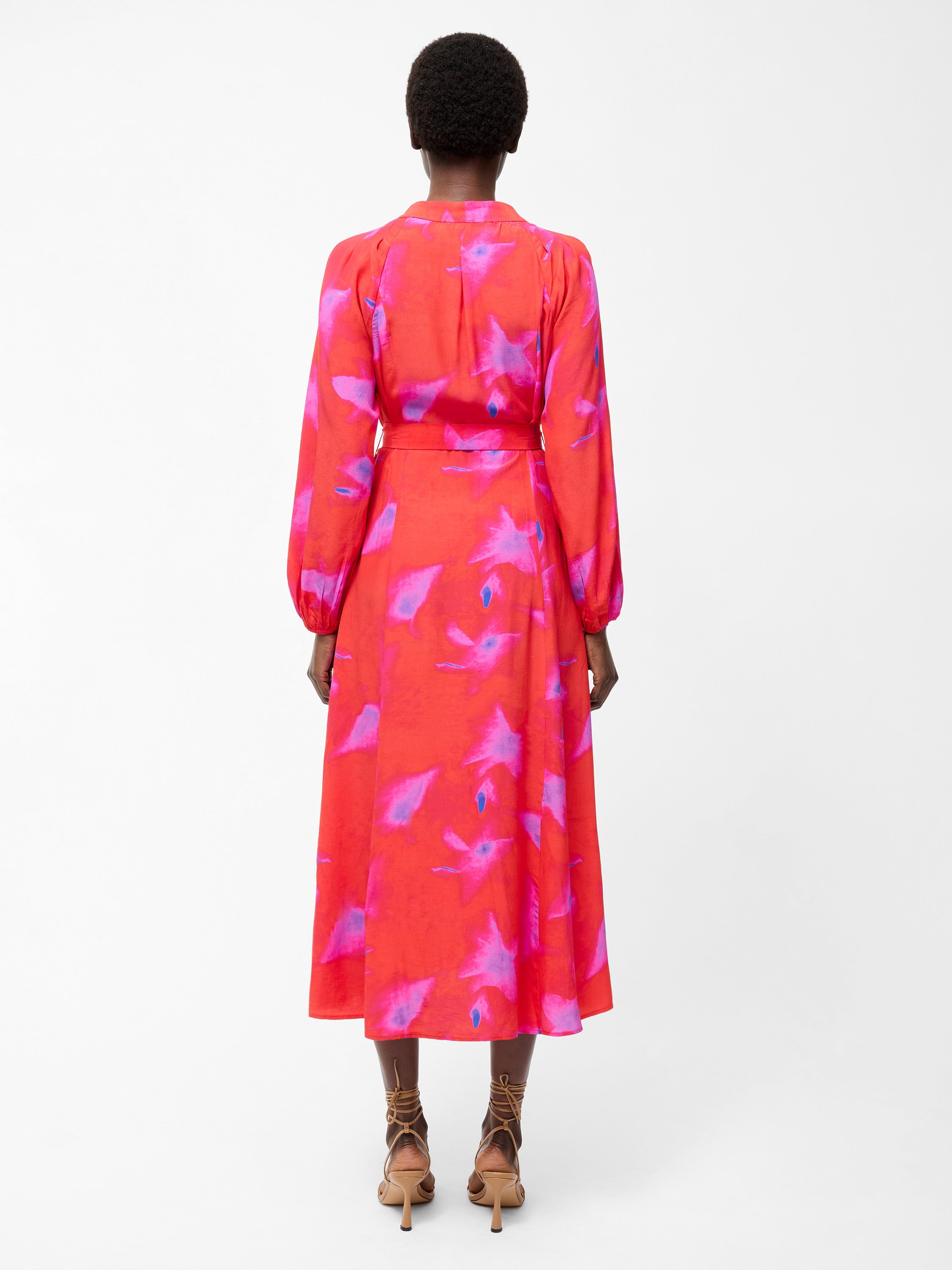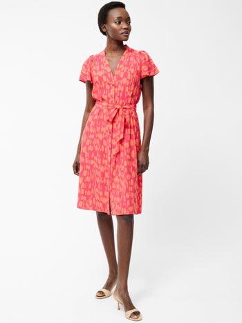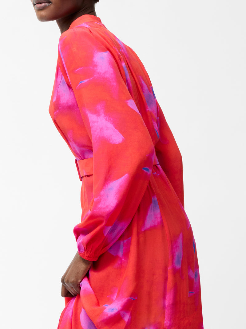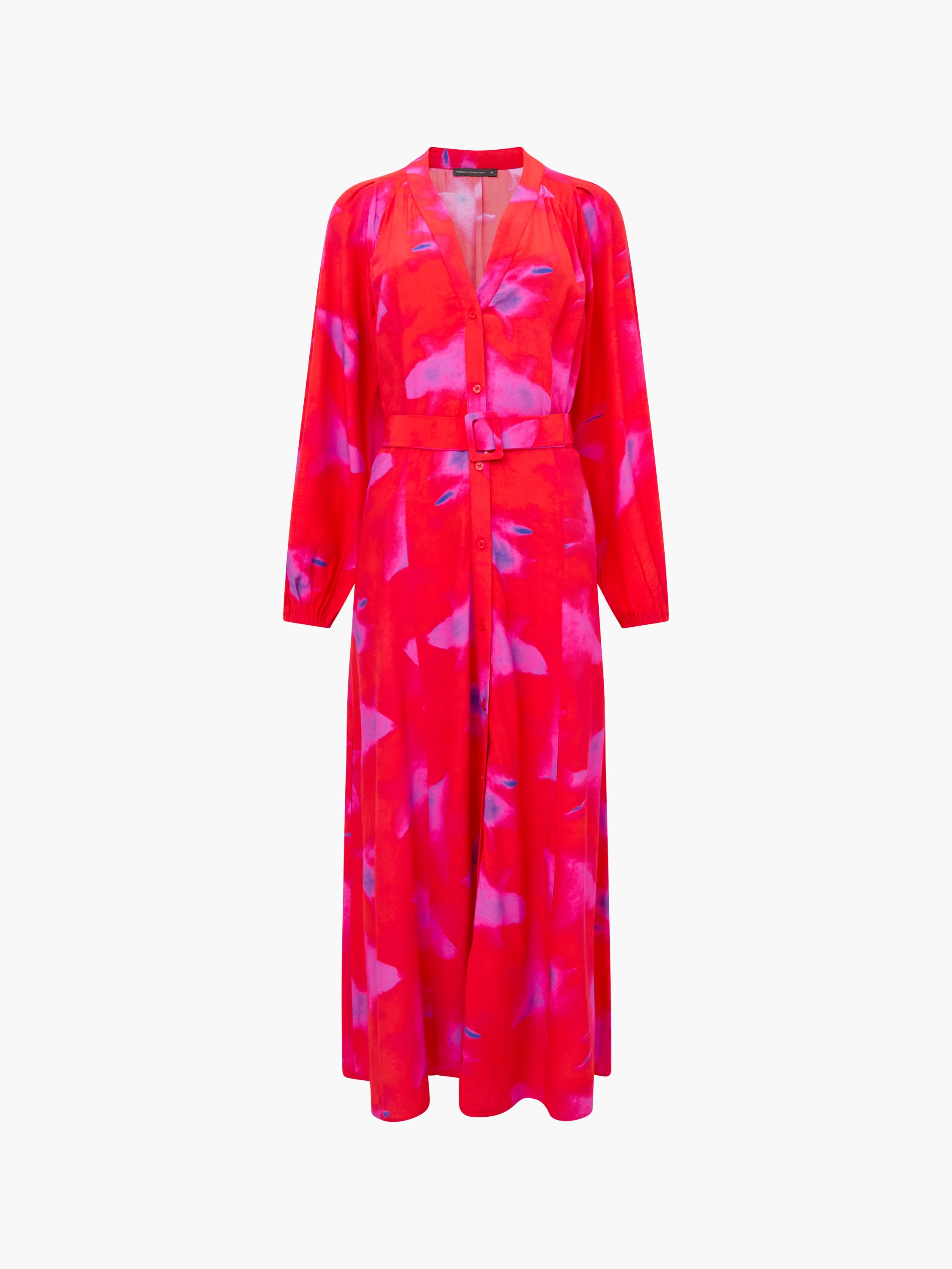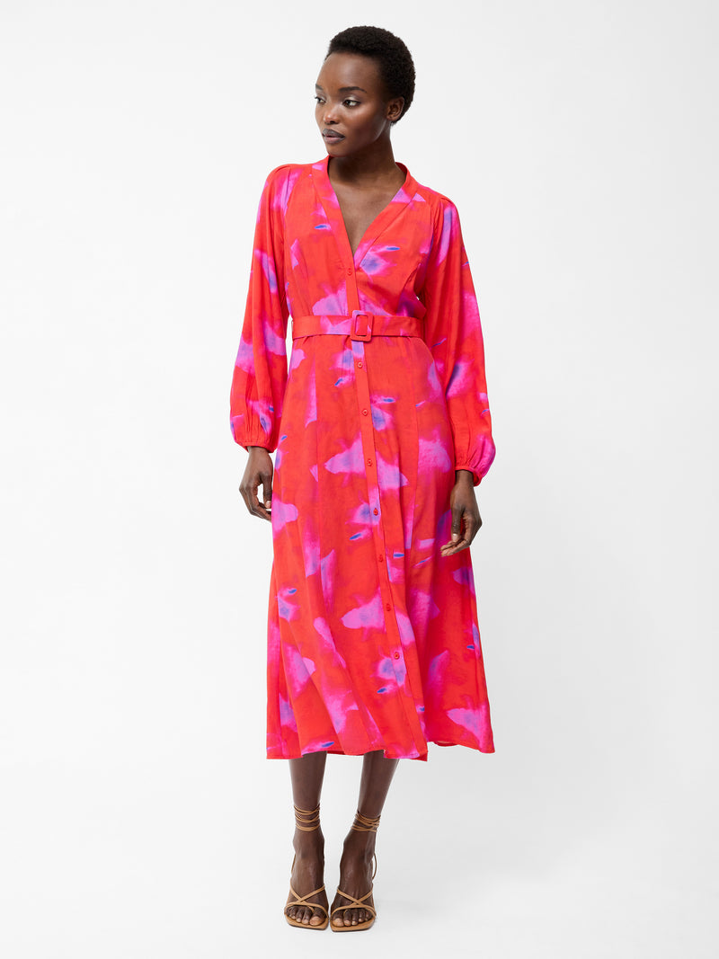 Bold colour meets flowing movement. Our Christy Belted V Neck Midi Dress features a vibrant abstract print, button-down fastening and balloon sleeves for a statement-making silhouette, complete with a matching waist belt.