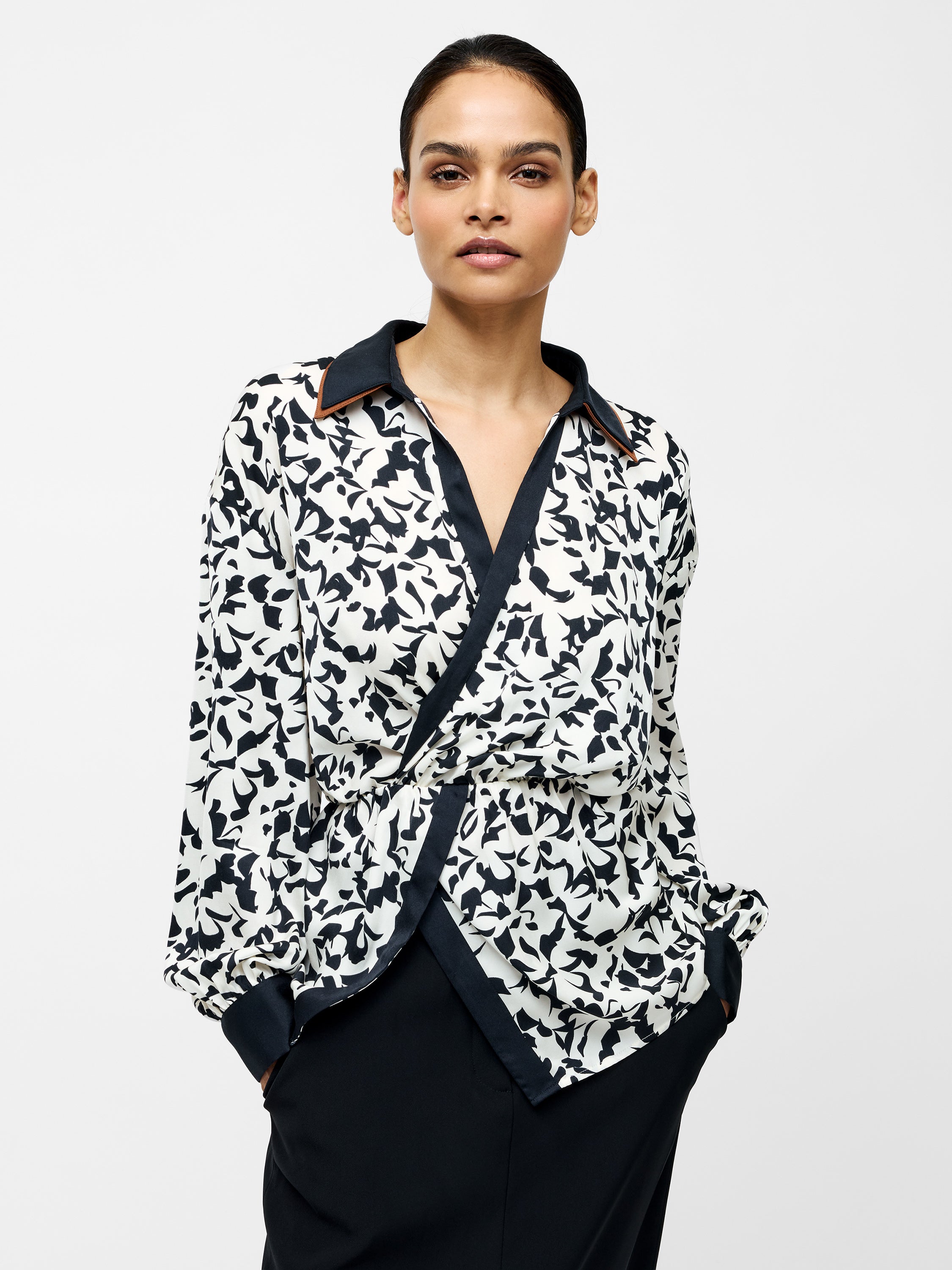 Statement shirting with a twist. Our Domasco Twist Popover Shirt has a monochrome print, complete with a contrasting double layer collar, buttoned cuffs and a twist illusion elasticated waist.