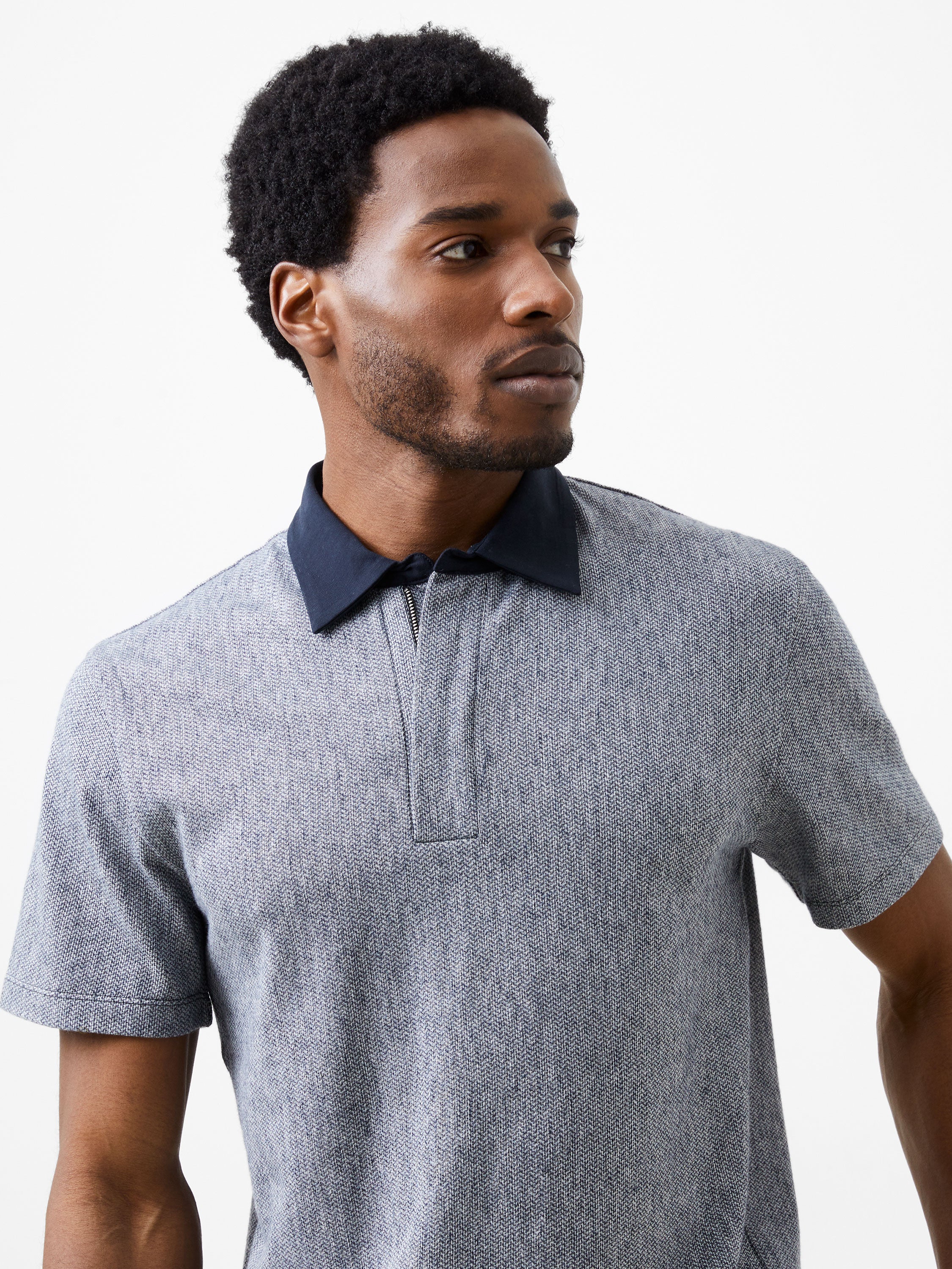 Casualwear made contemporary? Step forward our Graphic Zip Polo Shirt. This suave men's polo shirt offers its short sleeved body with monochrome chevron stitching, whilst a contrasting collar and concealed half zip masters modern styling.